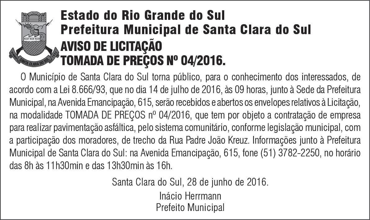 Diferentemente do publicado na edição dessa sexta-feira, na matéria da página 6, não consta o PSB como integrante da chapa que tenta a reeleição do atual prefeito. Desse modo, o correto da coligação que tem como pré-candidatos Luís Fernando Schmidt e Vilson Jacques é PT, PTB, PSC, PPL, PR e PSB.