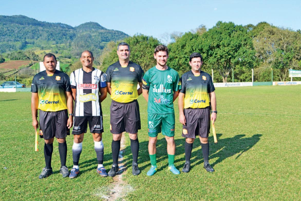 O trio de arbitragem Maico, Denilson e Nei comandou a partida entre Forquetense, do capitão Mariano, e Ecas, do capitão Givanildo.