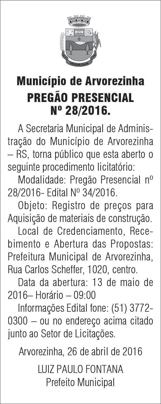 Municipal de Estrela. As provas escritas serão aplicadas no dia 28 de maio.