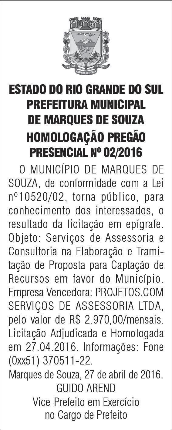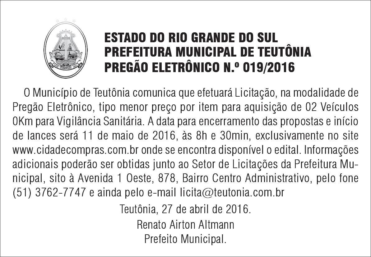 Os editais completos estão disponíveis no www.estrela.rs.gov.br