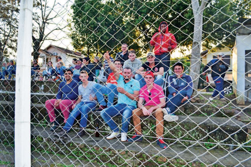 A turma de Nova Berlim não disputa o Regional, mas sempre acompanha os jogos. No domingo, prestigiou o confronto entre Brasil e Danados, em Marques de Souza.