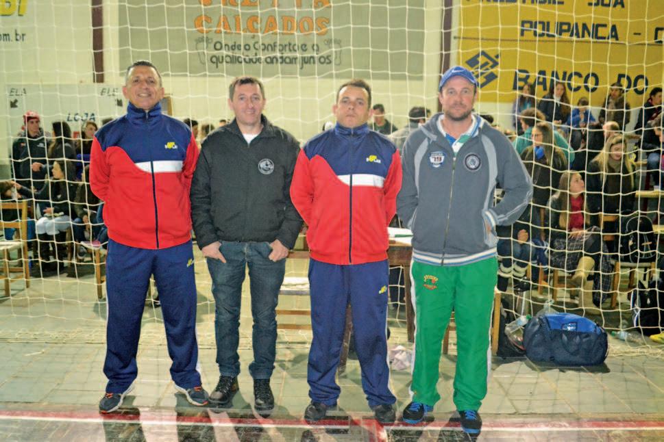 Durante as quartas de final do futsal de Progresso, Jorge Dutra, Fabrício Barbieri, Moacir Rodrigues e Alexandre Pfeiffer pediram um registro para recordação.