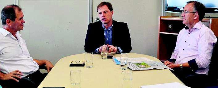 Os presidentes da CIC-VT, Ito Lanius (e), e do Comitê, Júlio Salecker (d), lideram o movimento regional. Na foto, em reunião com o secretário de Minas e Energia Lucas Redecker (ao centro).