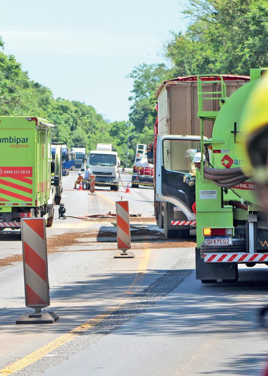 Colisão entre duas carretas derrama combustível na pista. Risco de explosão obrigou interrupção do trânsito. Fluxo foi liberado à noite