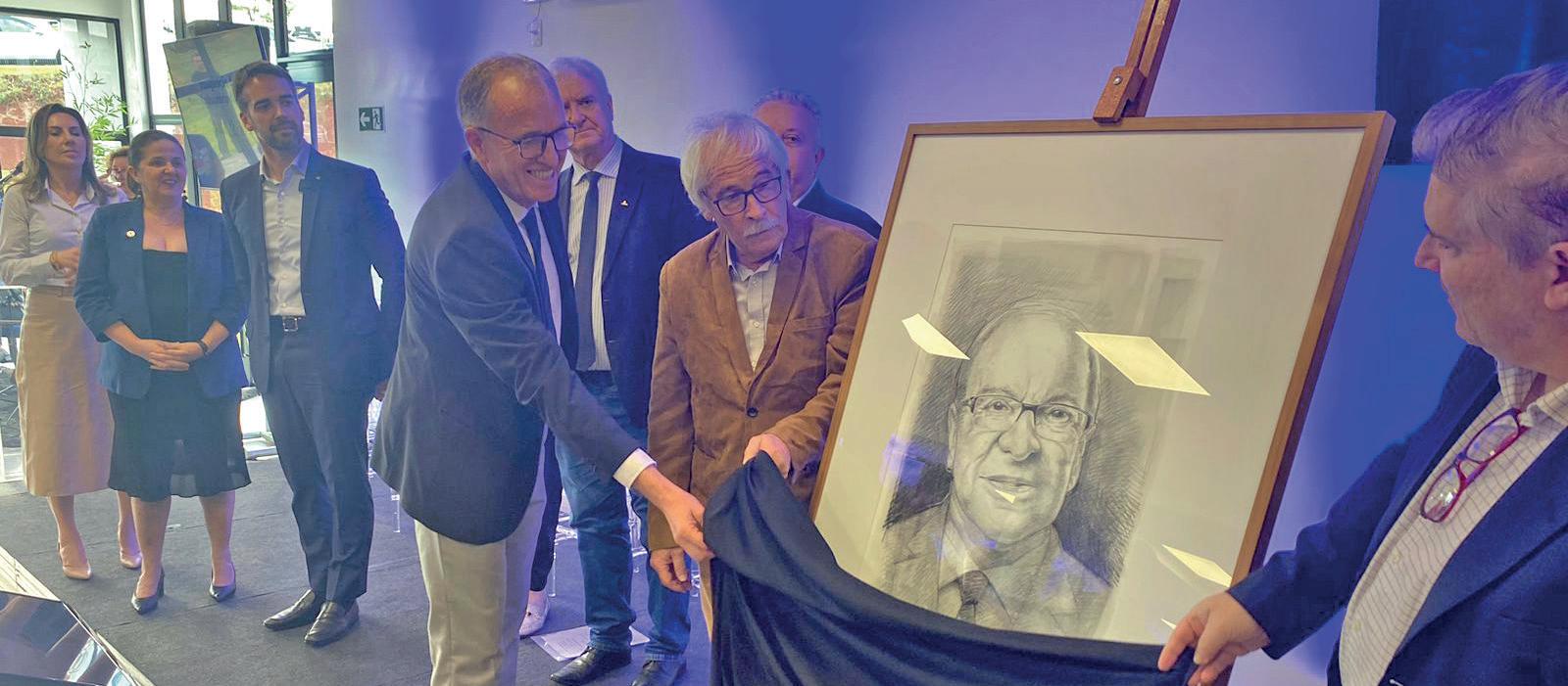 Fundador da Fundação para Reabilitação das Deformidades Crânio Faciais e Reabilitação Auditiva (Fundef), o saudoso Dr. Wilson Dewes foi duplamente homenageado na inauguração do amplo, acolhedor e moderno ambulatório da Fundef. Além da sala de reuniões levar o nome do médico, morto em março deste ano, o espaço também será decorado com um retrato desenhado pelo artista Daniel Wallerius, e entregue à Fundef na presença do governador Eduardo Leite, durante a solenidade de abertura da clínica instalada no seguro – e também acolhedor – campus da Univates.