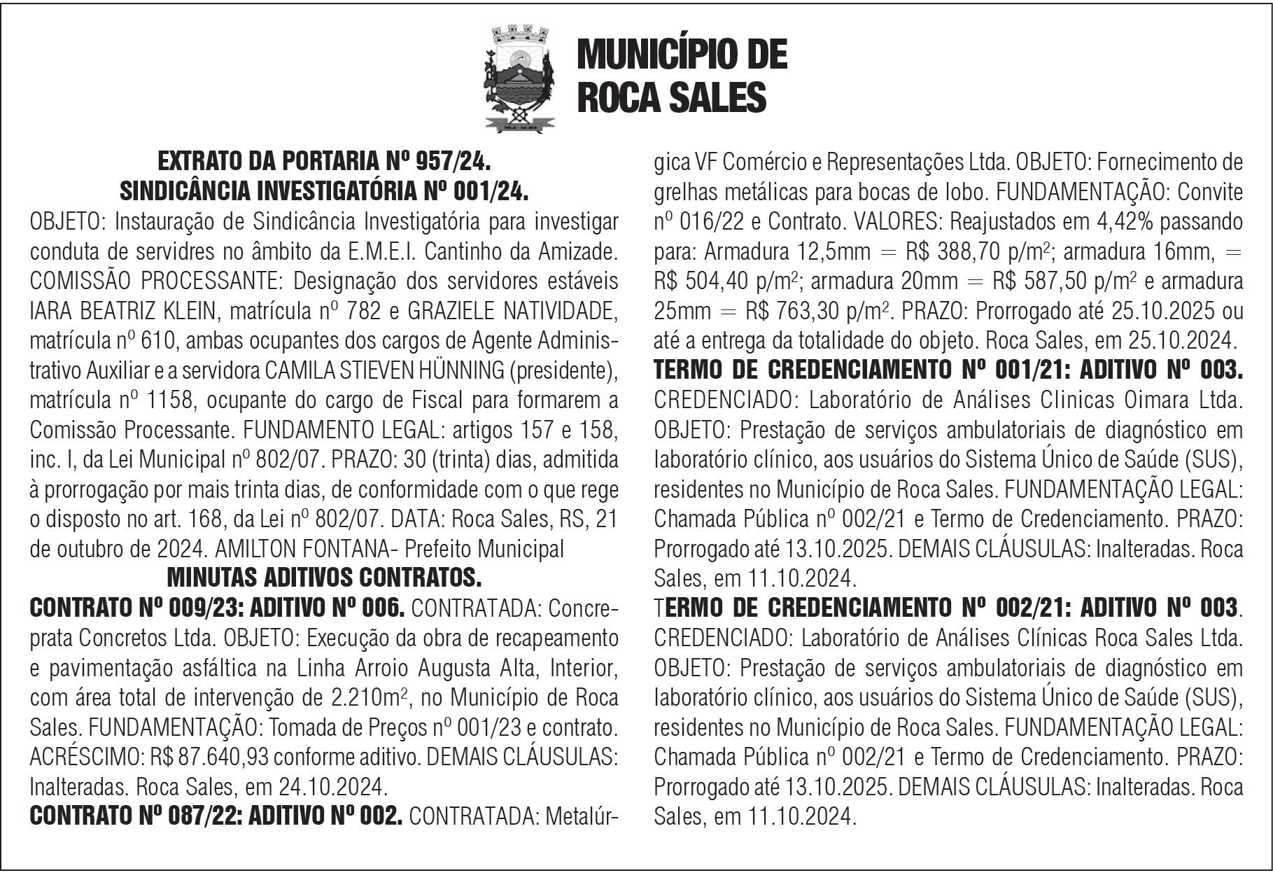 - Em Venâncio Aires, os vereadores vão convocar o diretor geral da Concessionária Rota de Santa Maria, do Grupo Sacyr, Leandro Conterato, para ir até o plenário da câmara dar explicações sobre a reforma e duplicação da RSC-287. E com tantos problemas envolvendo concessionárias no Vale do Taquari, fica a dica para os sempre ativos vereadores da região. Bom fim de semana a todos!