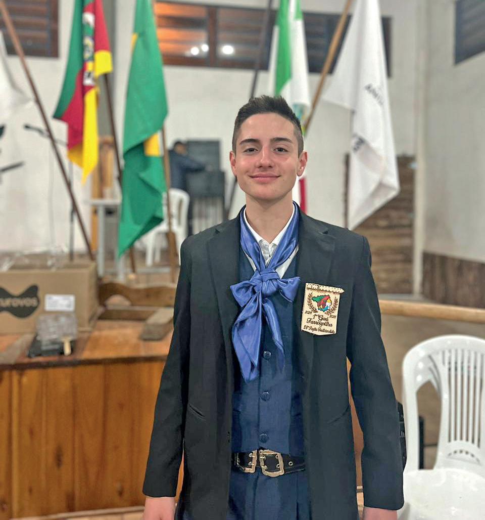 24ªRegiãoTradicionalista 2024erepresentaoValedo TaquarinacategoriaJuvenil masculino. Desde cedo no tradicionalismo, ele se destacaporseroprimeiro estrelensenocargo