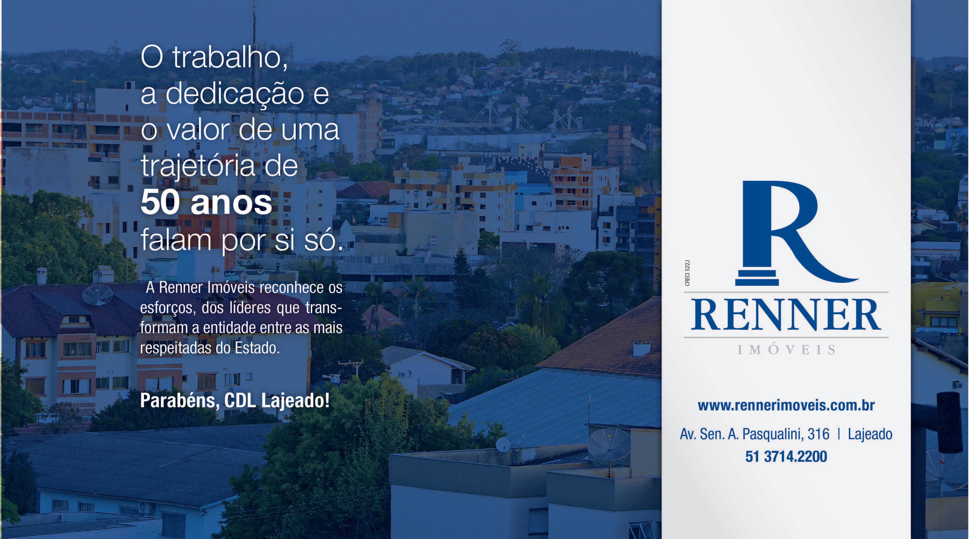 Por m, abrimos espaço para uma mensagem sobre os 50 anos da CDL. Arenhart – Prezados amigos e líderes: continuem com vosso honrado, nobre e fundamental trabalho! A abnegação, o devotamento e a capacidade de trabalho voluntário dos senhores é, certamente, uma das razões para o crescimento e consolidação de Lajeado. Contem com a Acil para continuarmos juntos essa caminhada.