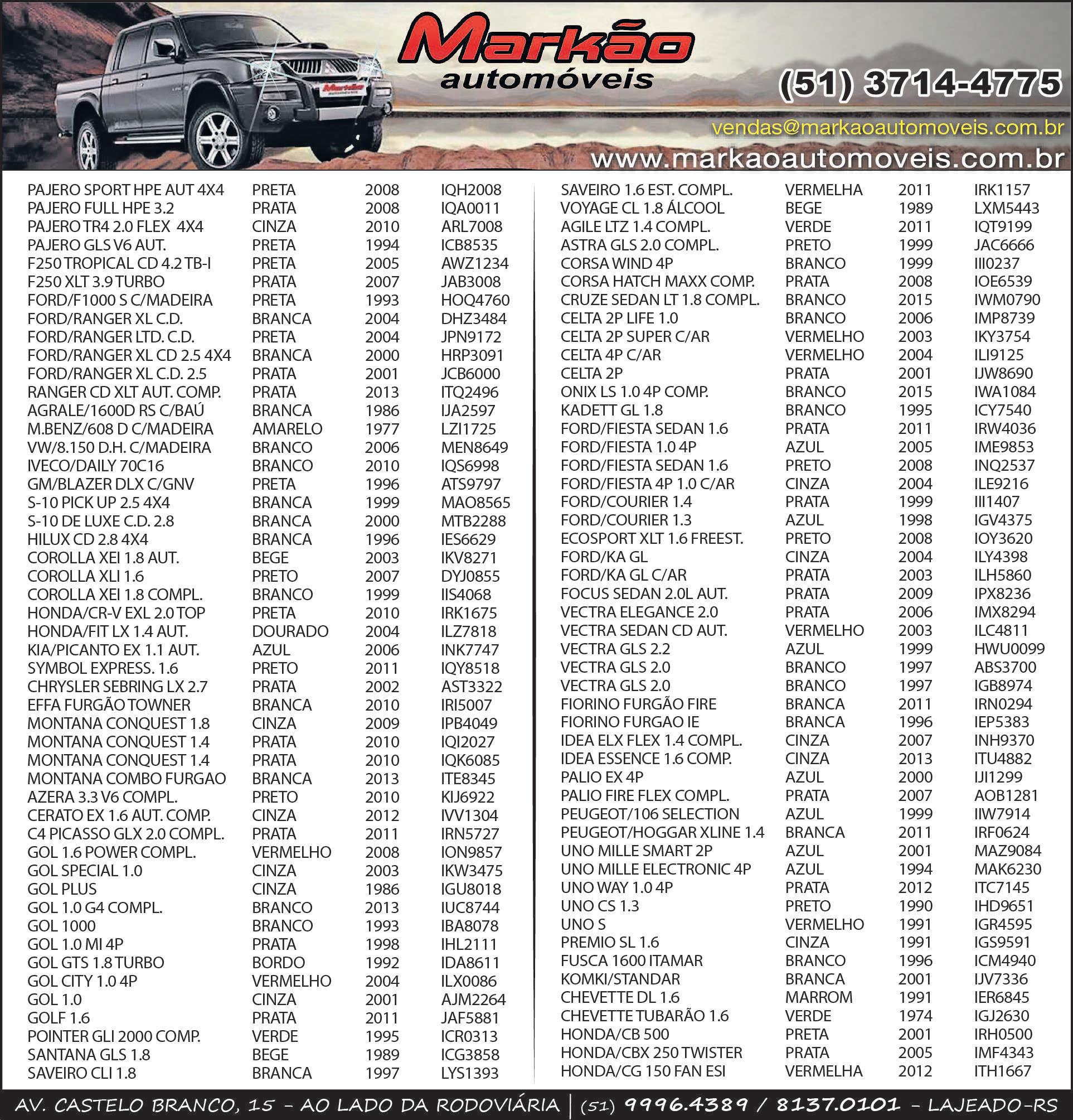 Schuster: Avenida Senador Alberto Pasqualini, 3739, bairro Universitário em Lajeado. Tr.: 3748-7332