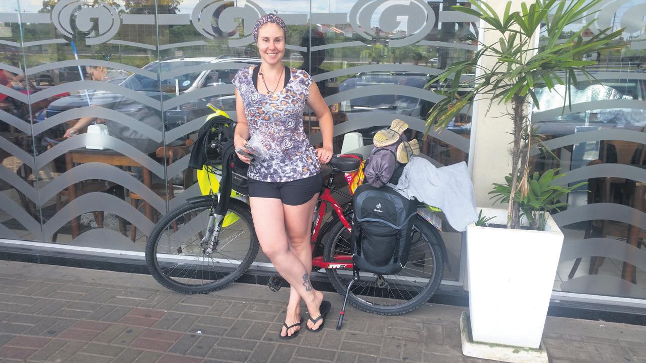 Carolina coloca em prática um antigo desejo de viajar de bicicleta
