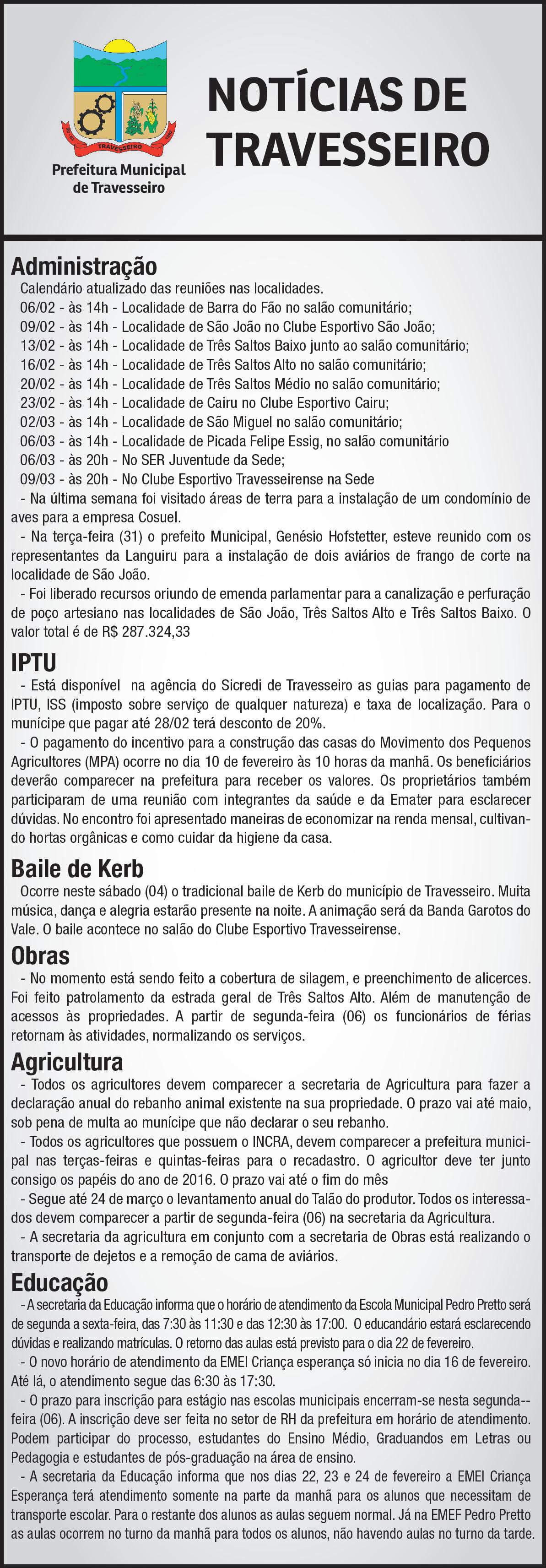 tos e agropecuária é atrativo. Os 48 estandes foram vendidos em três dias. Das 30 unidades externas ainda restam algumas. Conforme o prefeito Sandro Ranieri Herrmann, o objetivo é enaltecer o potencial turístico da cidade. “A realização é toda da comunidade. O Executivo não aplicará recursos. Os shows serão pagos com o arrecadado