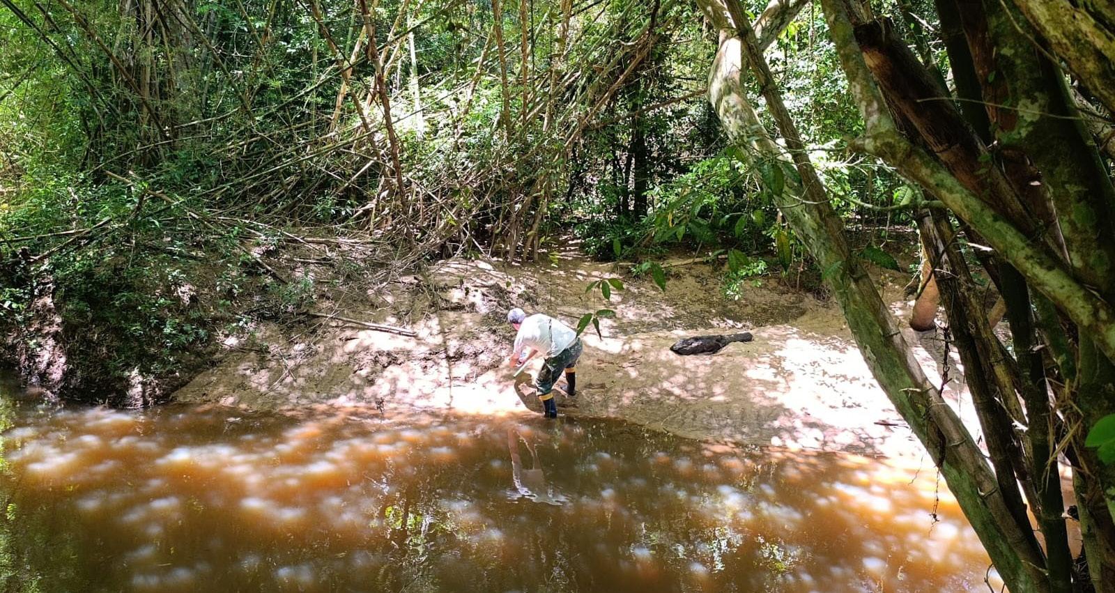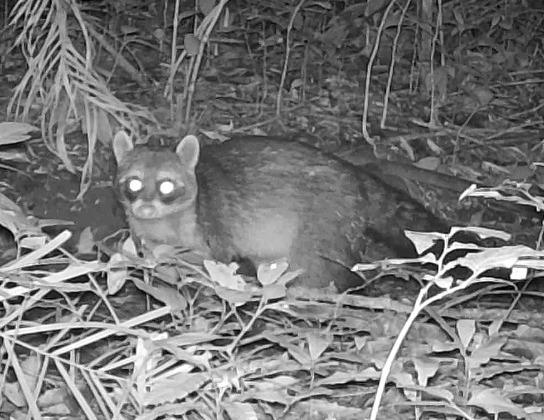 do animal. “O cheiro é forte”, diz o professor. Ele explica que as lontras de alimentam de peixes, uma das razões das fezes terem mau odor. Outro achado foi a pegada de um mão-pelada. Durante a caminhada pelas trilhas e mata foram instaladas 18 câmeras.