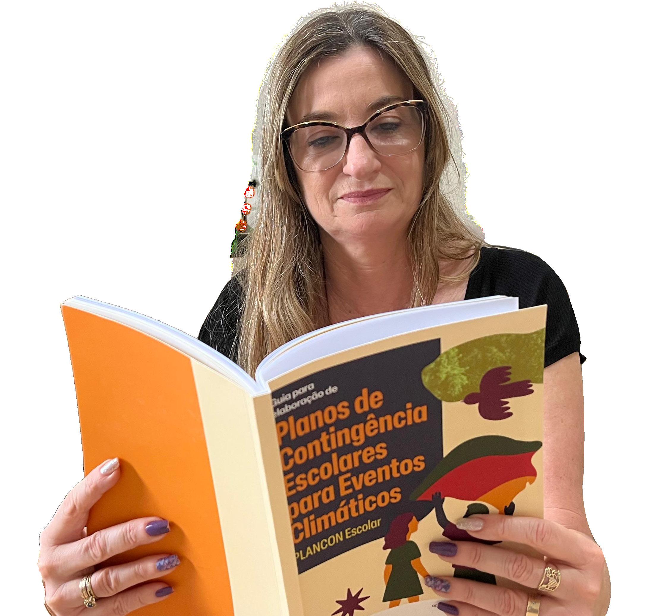 Osorriso no rosto de Karina Baronio Cucioli, diretora da EEEM General Souza Doca, de Muçum, traduz a gratidão por ver a escola tornar-se uma das referências para a criação do Guia para Elaboração de Planos de Contingência Escolares para Eventos Climáticos - o Plancon Escolar. Lançada em outubro, a publicação orienta as instituições sobre como agir antes, durante e após eventos climáticos extremos ou emergências.