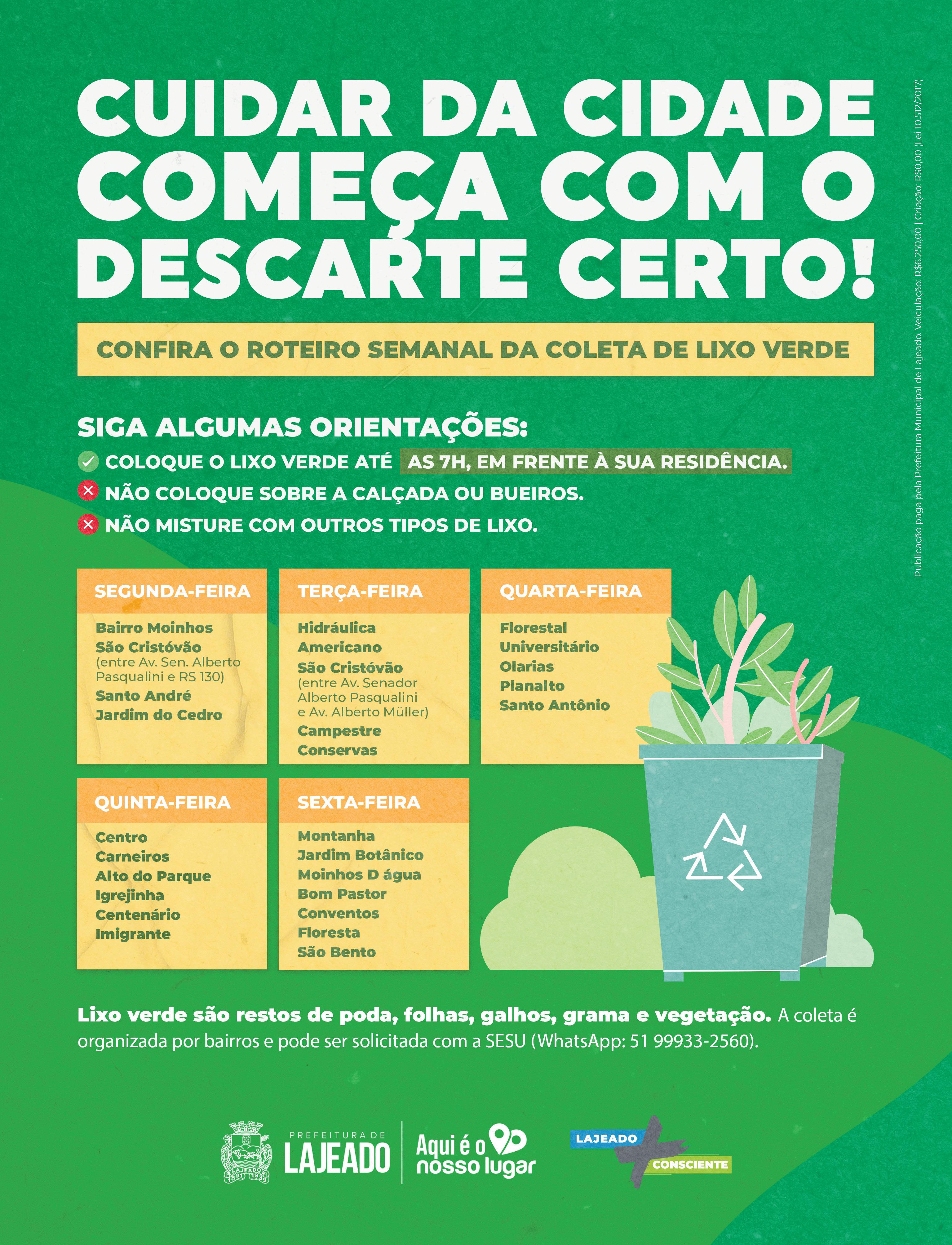 Reduzir, reutilizar e reciclar. Três palavras que podem salvar o mundo. Um bairro limpo depende de cada um de nós. Não polua, evolua.