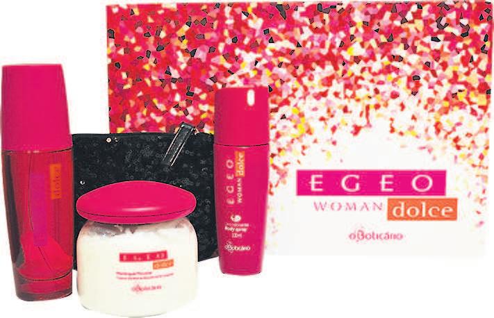 Kit Egeo Woman Dolce (uma necessaire paetê, um hidratante, uma colônia Egeo Dolce e um desodorante), do Boticário Chinelo Ipanema