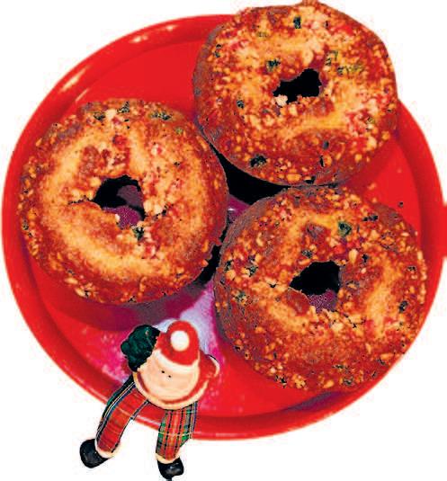 MinibolodeNatalde pêssego,cobertocom castanha-do-paráe cerejascoloridas,da VovóFazBolo