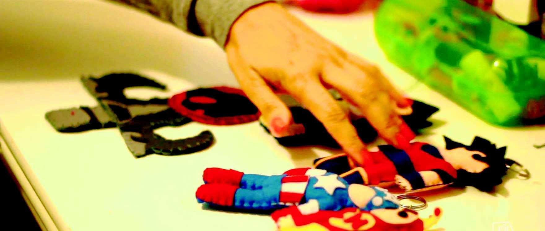 Batman, Super-Homem, Mulher Maravilha até Chaves e a Chiquinha são alguns dos personagens feitos a partir dos recortes e costuras em feltro.