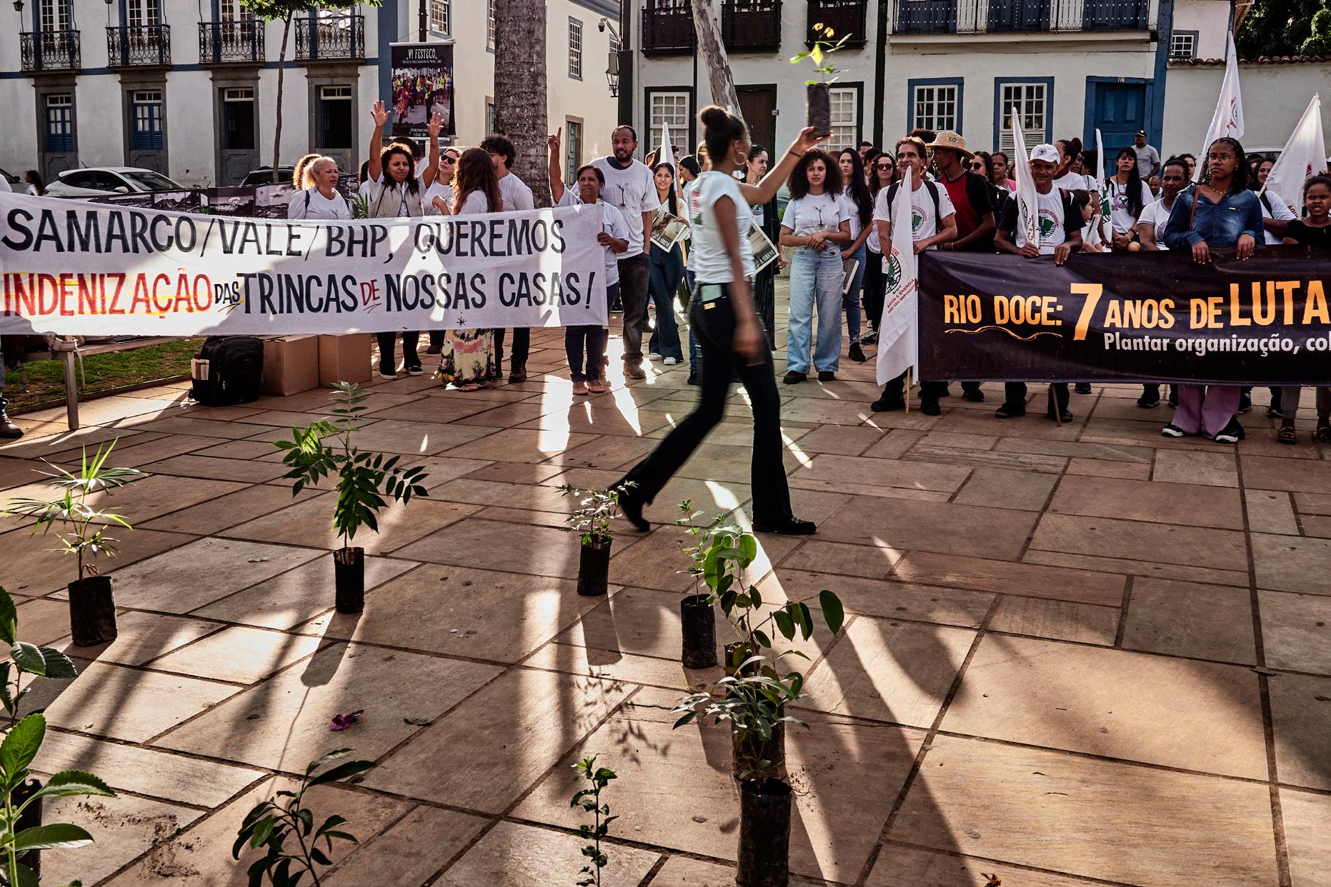 Um dos eventos que marcam os sete anos do rompimento da barragem de Fundão é a expo sição a céu aberto Se há vida, há luta. Realizada em parceria entre a Cáritas MG, assessoria téc nica independente (ATI) das pessoas atingidas em Mariana, e o Jornal A SIRENE, a exposição fotográfica ocupa a fachada lateral do pré dio do Instituto de Ciências Sociais Aplicadas da Universidade Federal de Ouro Preto (ICSA/ UFOP), na Rua do Catete, no centro da cidade. As imagens, escolhidas com curadoria da ATI, do jornal e das pessoas atingidas, foram produ zidas pel’A SIRENE desde fevereiro de 2016.