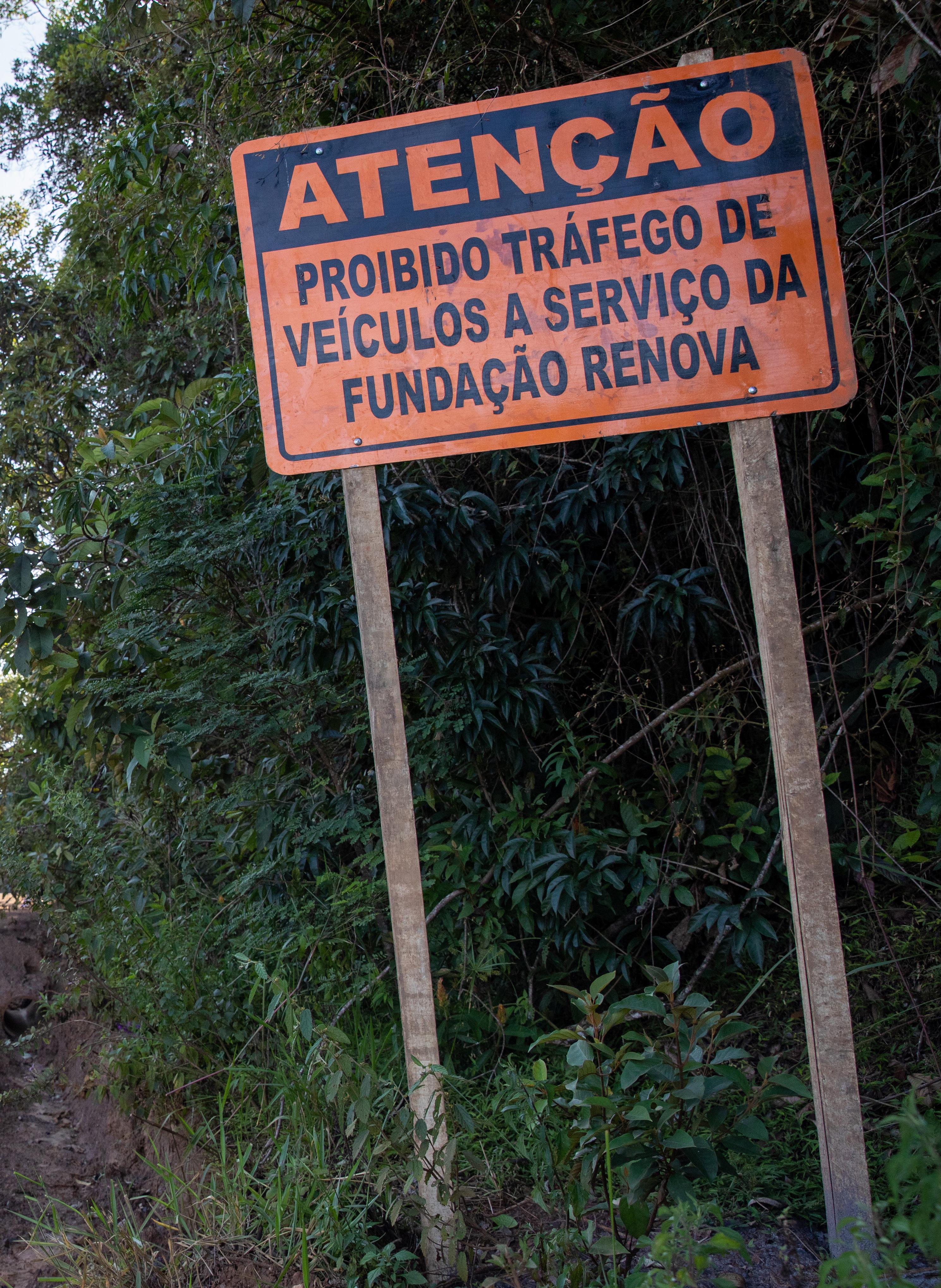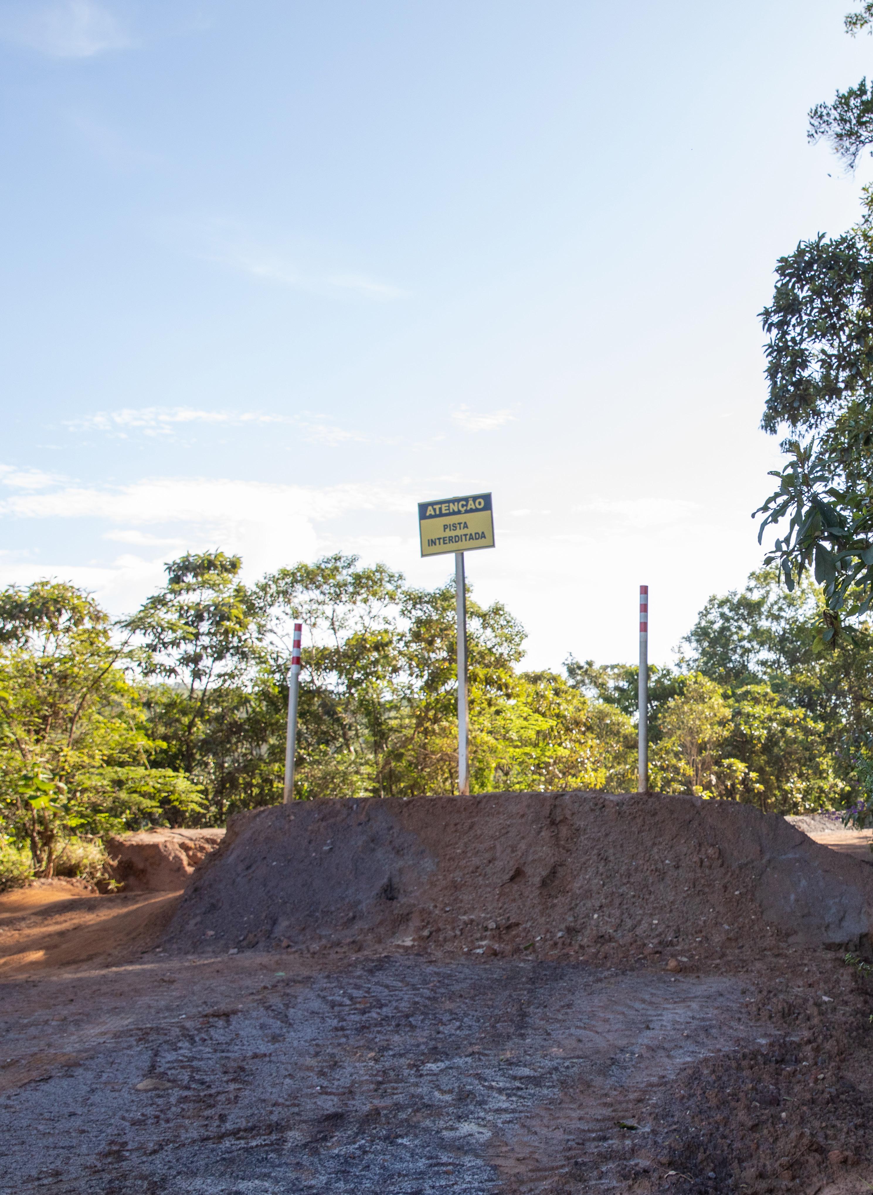 Ano passado, a gente mendigou pra Fundação Renova colocar uma placa pras pessoas que fazem esse percurso terem ciência do que estava acontecendo, porque muita gente vinha e se deparava com o buraco, então quem não conhecia a estrada corria um grande risco. A placa só foi colocada depois que abrimos o acesso, mas para alertar os funcionários.