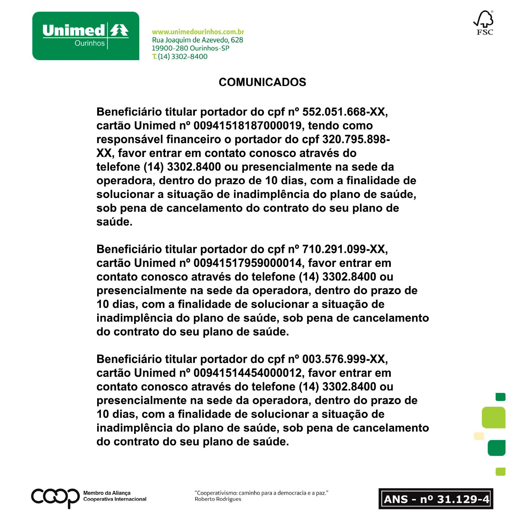devem entrar em conta to no 3332 5909 ou 14 99852-2165.