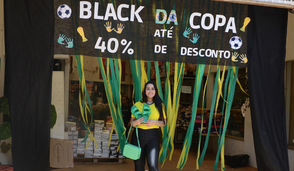 Na fachada da loja, por exemplo, é possível avistar uma faixa com os escritos “Black da Copa até 40% de desconto”, referenciando a Copa do Mundo e a Black Friday, outro evento que movimenta a economia.