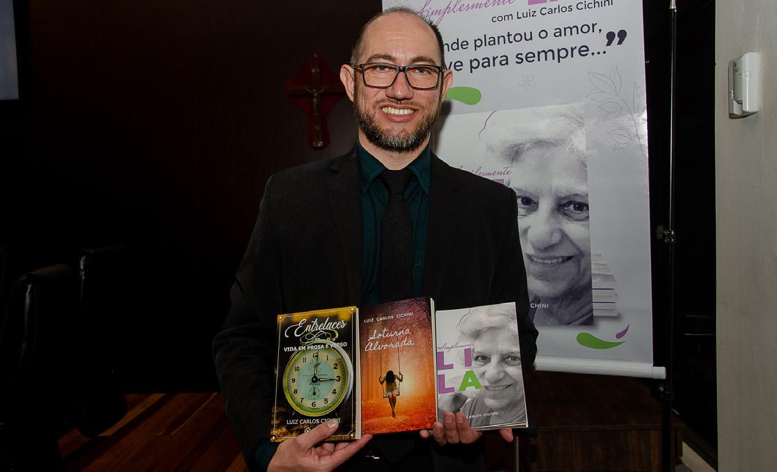 Luiz e suas três obras publicadas. | Foto: Fran e Du Fotografia