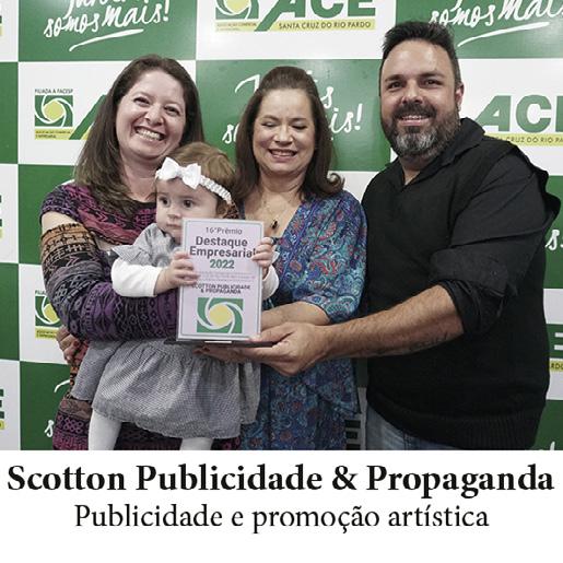 Santa Cruz do Rio Pardo | Ano IX | Edição 246 | 19 de Novembro de 2022 | DISTRIBUIÇÃO GRATUITA Comércio tem economia aquecida com Copa do Mundo e Natal Pág. 02 e 06 4ª edição do Raul Rock é sucesso em Santa Cruz do Rio Pardo Casal gaúcho inova no tema de mêsversário do filho e viraliza Pág. 10 Pág. 09 GERAL HOMENAGEM CIDADE NEGÓCIOS ESPECIAL Osteopatia na gravidez ajuda na saúde da gestante Autor santa-cruzense lança seu terceiro livro Onde assistir os jogos da Copa aqui em Santa Cruz do Rio Pardo? Estudante santa-cruzense tem loja online de acessórios personalizados à mão Leônidas realiza sua primeira mostra cultural Pág. 03 Pág. 02 Pág. 03 Pág. 06 Pág. 07 CULTURA EMPREENDER SAÚDE ESPORTES EDUCAÇÃO Natal Mágico se inicia em Santa Cruz no mês de dezembro Casal santacruzense inova com produção de doces fitness “Depressão de fim de ano”: entenda os principais motivos que causam esse fenômeno Santa-cruzense representará o Brasil em competição na Itália Prefeitura realiza 1º seminário de boas práticas da educação infantil Pág. 11 Pág. 07 Pág. 10 Pág. 11 Pág. 09