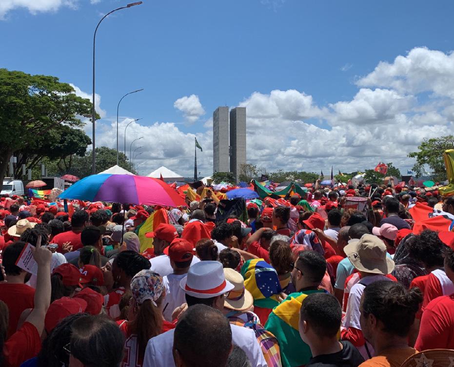 por uma longa e cansativa viagem de ônibus, com cerca de 17 horas para ir até o local, que estava extremamente lotado, com clima quente e seco. Mesmo com isso, ele disse que ainda valeu a pena. “Era um clima de paz. Era totalmente harmonioso o ambiente, as pessoas que passavam de carro acenavam e faziam o ‘L’ de Lula. Você poderia andar tranquilamente por Brasília, pois se via policial para todos os lados, com um esquema de segurança fortíssimo”, conta. “Não houve nenhum tipo de manifestação contrária”.