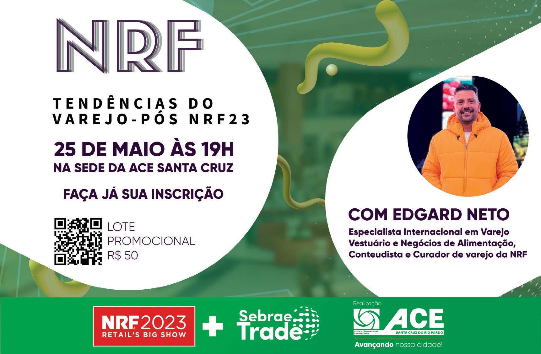 Em busca de atualização sobre as últimas tendências do varejo mundial, a ACE promove em sua sede no dia 25 de maio às 19h uma palestra com base nos conceitos e discussões apresentados no NRF, sigla em inglês para Congresso Internacional de Varejo, ocorrido recentemente em Nova Iorque, esse evento tem como objetivo fornecer aos participantes uma visão abrangente do cenário varejista atual, além de compartilhar as inovações e tecnologias em alta no setor.