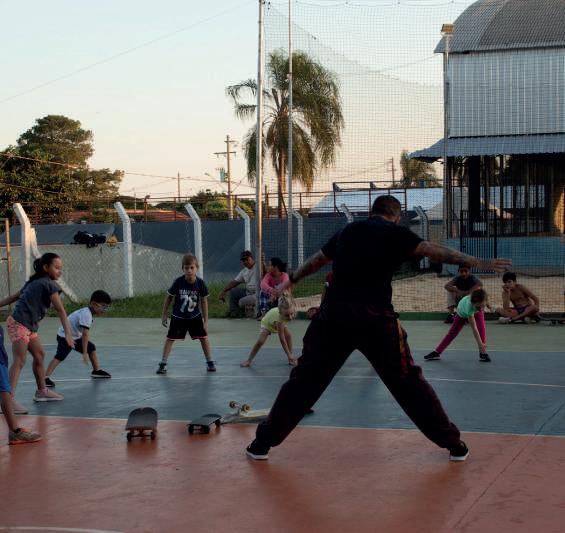 anos de experiência como skatista, e, em sua proposta pedagógica, ele destaca que quer trazer fundamentos da yoga para as aulas, pensando em trabalhar com os alunos técnicas para lidar com a ansiedade e o estresse. A idade escolhida, de 04 anos em diante, foi pensada por ser a idade que a criança é mais lúdica, segundo observações que o professor fez com o próprio lho de 08 anos de idade, campeão de diversos campeonatos e skatista desde o primeiro ano de vida.