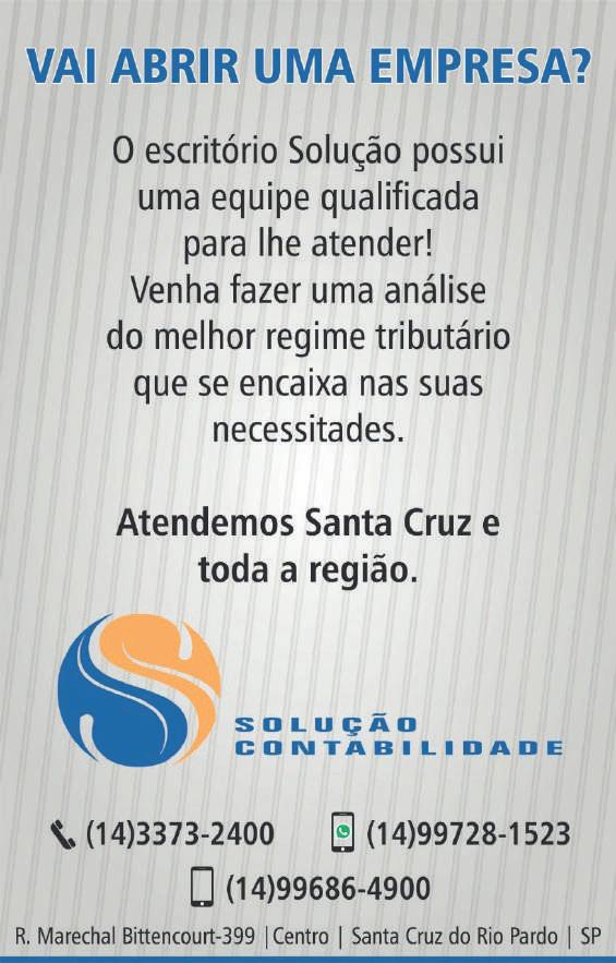 8 de junho de 2024 www.jornalatual.info 11 R. Cons. Antonio Prado, 601 – Centro – Fone/Fax (14) 3372-5454 CEP 18900-000 – SANTA CRUZ DO RIO PARDO – SP e-mail: sindrural@tdkom.com.br