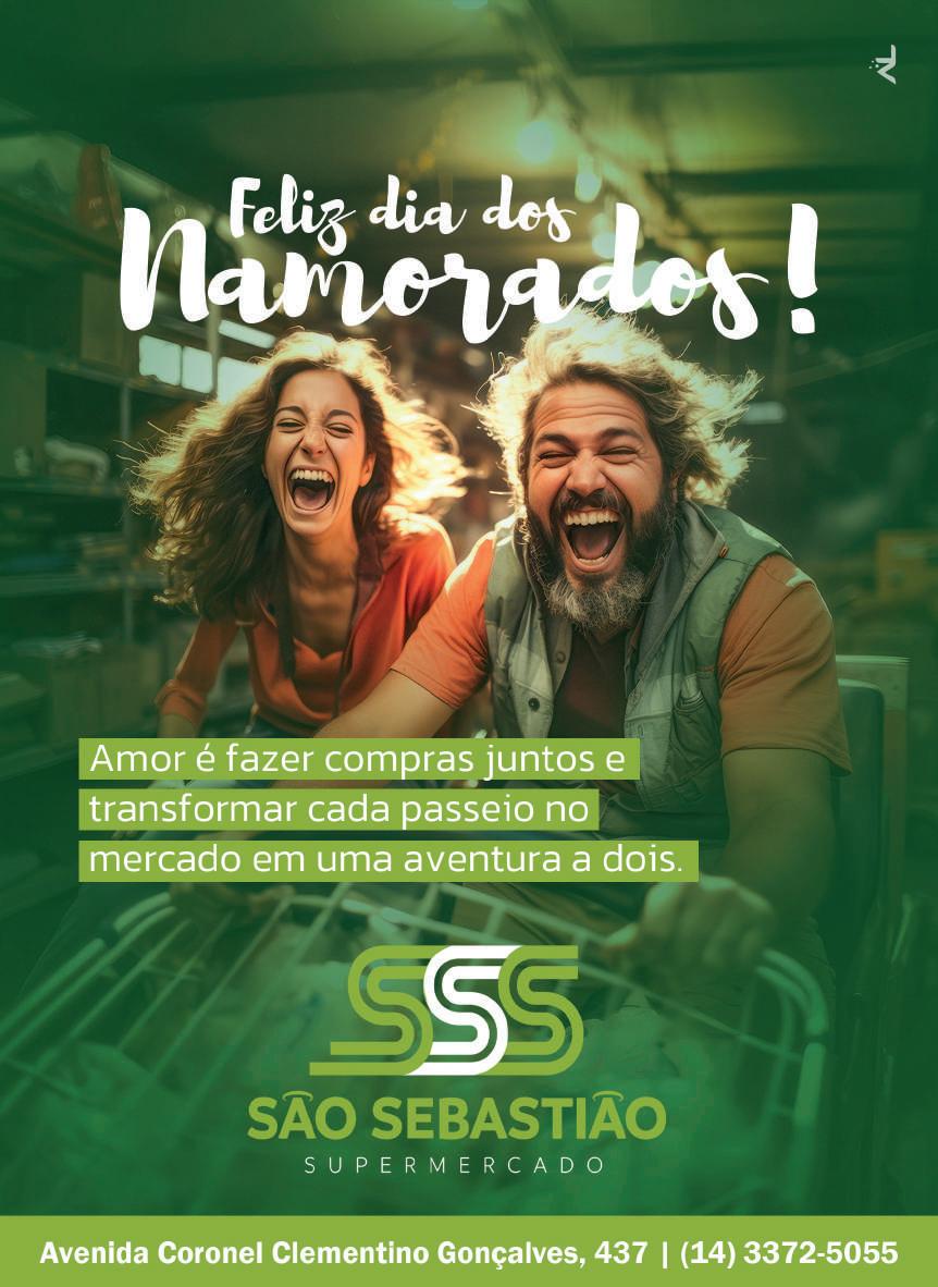Expediente Circulação regional • Distribuição gratuita * A empresa Atual Comunicação, através do impresso Jornal Atual não se responsabiliza pelo conteúdo dos espaços publicitários e colunas publicadas, que são de inteira e exclusiva responsabilidade de seus autores. EDITOR CHEFE Renan Alves • MTB: 76.398/SP IMPRESSÃO - GrafiPress REPÓRTER Giovana Dal Posso Mariana Chagas DIAGRAMAÇÃO E ARTE João Marcelino ESTAGIÁRIOS Matheus Braga - Jornalismo Nathalia Franqlin - Jornalismo Bruno Bianchi - Diagramação COLABORAÇÃO - Toko Degaspari jornalatual jornalatual@jornalatual.info (14) 3372-0679 | (14) 99779-1273 Av. Tiradentes, 360 - 3°andar - sala 31 FOTOGRAFIA E ATENDIMENTO João Vitor Andreoli ASSESSORIA JURÍDICA - João Gabriel Lemos Ferreira É infor mação. É entretenimento. É Atual ACESSE sefert.com.br 12 DE JUNHO CELEBRE O AMOR! FELIZ DIA DOS NAMORADOS. Idade 17 anos 25 a 34 anos 70 a 79 anos 16 anos 21 a 24 anos 60 a 69 anos 18 a 20 anos 45 a 59 anos 34 a 44 anos +79 anos Total Eleitores 194 6.271 2.716 Faixa Etária do Eleitorado Apto 64 2.393 4.808 1.487 8.778 6.594 706 34.016 Eleições 2024: Maioria dos eleitores de Santa Cruz tem entre 45 a 59