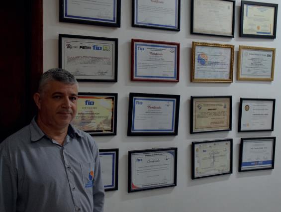 Marcel exibe os diversos certificados conquistados pelo escritório. Foto: Maria Luiza de Carvalho