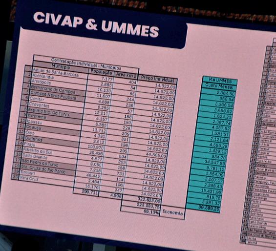 mil via CIVAP ou R$99 mil via UMMES. Chama a atenção que na tabela comparativa entre valores ‘normais’ e valores ‘com desconto’, a cidade de Santa Cruz do Rio Pardo é a única que não recebe o benefício, pelo contrário, o valor aumenta de R$14.622,00 para R$15.431,95. Procurado, Paulo Machado, afirmou que foi um erro de digitação na tabela. “Vamos seguir o valor mais baixo para