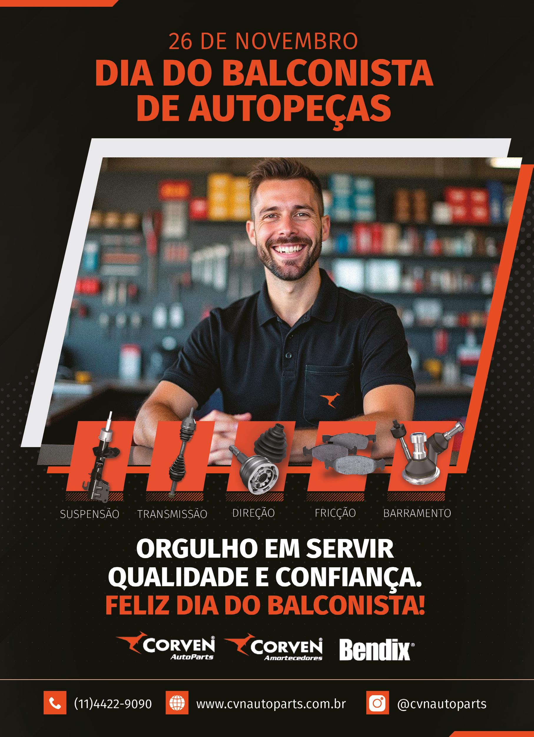 Para a edição de novembro, mês de importantes datas comemorativas, dentre elas a Proclamação da República, no dia 15, e o Dia da Consciência Negra, no dia 20, o Balcão Automotivo traz, em especial, abordagens sobre o balconista, importante profissional, que terá seu dia comemorado em 26 de novembro.