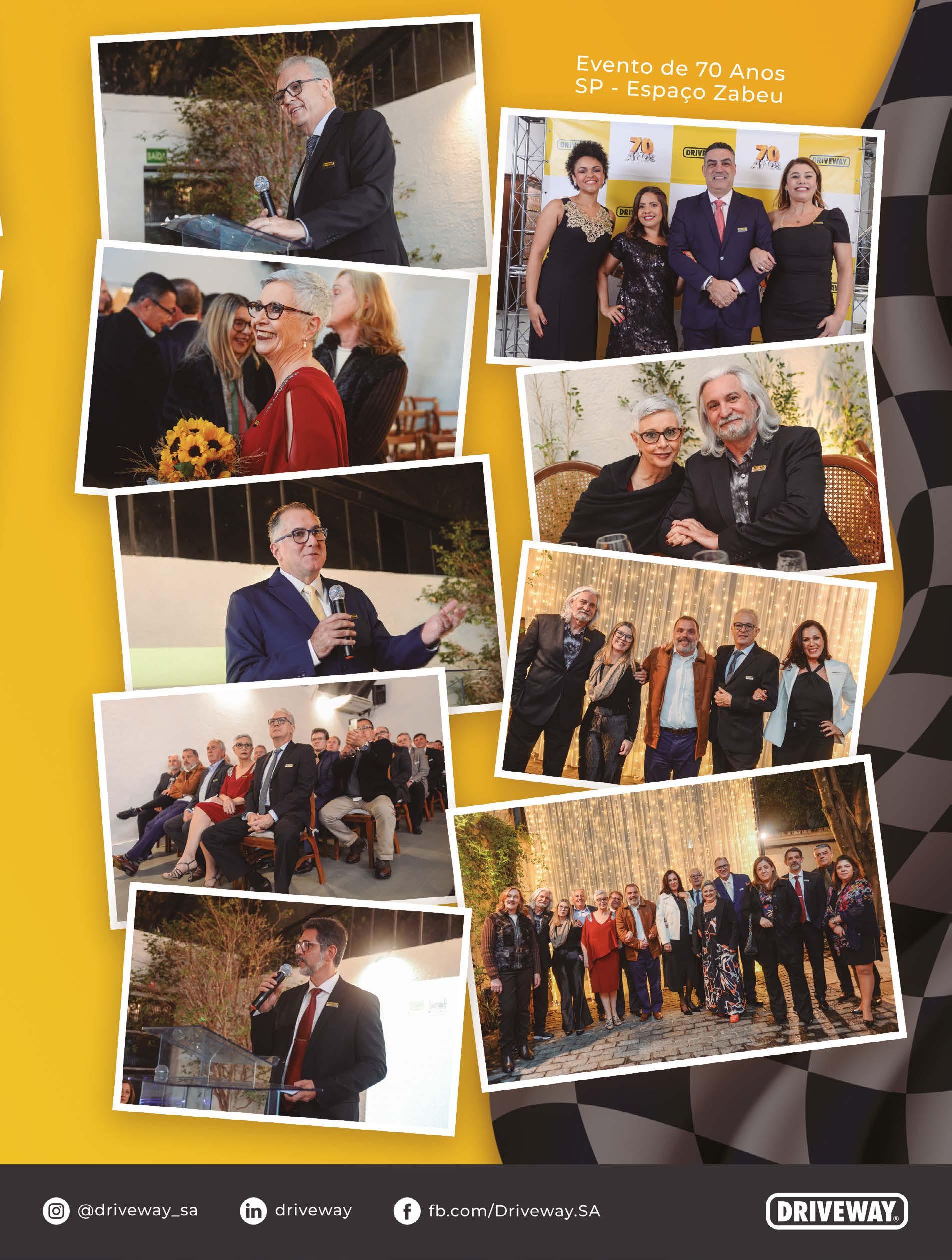 A Driveway completou no último dia 29 de setembro 70 anos de história. E para celebrar a marca, a empresa preparou uma festa grandiosa, que teve, para se ter uma ideia, as presenças dos maiores distribuidores e revendedores de peças do mercado automotivo. Propositalmente, o evento aconteceu no bairro do Ipiranga, na capital paulista, onde tudo começou em 1952. A noite foi repleta de emoção e comprovou o sucesso de uma indústria