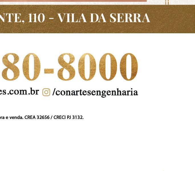 03Nº 383 | 10 de agosto de 2022 Ser Prime é acordar todos os dias e ter a sensação de que ainda está em um sonho. Conheça o seu 4 quartos no Vila da Serra. TORRE LINEAR 2 SUÍTES E 2 SEMISSUÍTES UNIDADES DE 141 m ² A 152 m ² 2 VAGAS TORRE DUPLEX UNIDADES DE 198 m² 4 QUARTOS DUPLEX, TOP HOUSE 2 SUÍTES E 2 SEMISSUÍTES, 3 VAGAS A vista é dos sonhos, e a localização é boa demais para ser verdade. Bem-vindo ao Prime House: 3646-47005 98465-2185 primehouseviladaserra.com.br VISITE O STAND DE VENDAS E CONHEÇA AS CONDIÇÕES ESPECIAIS DO SEU NOVO APARTAMENTO. MUDEEM2022 Entreganosegundosemestre • Vista privilegiada • Últimas Unidades • Área de lazer completa com piscina interna e externa, espaço gourmet, playground Empreendimento incorporado e registrado no cartório de registro de imóveis de Nova Lima, sob o número de matrícula r-6-39.852. Toda e qualquer venda estará sujeita ao pagamento do valor correspondente á intermediação/coordenação imobiliária, e as respectivas comissões decorrentes de autônomos/imobiliárias deverão ser suportadas pelo comprador e, desmembradas do valor final do contrato, pagas diretamente aos corretores autônomos/imobiliárias participantes da intermediação, caso seja esta a opção de pagamento junto às imobiliárias. Material produzido em junho/2022. Todas as imagens são meramente ilustrativas.