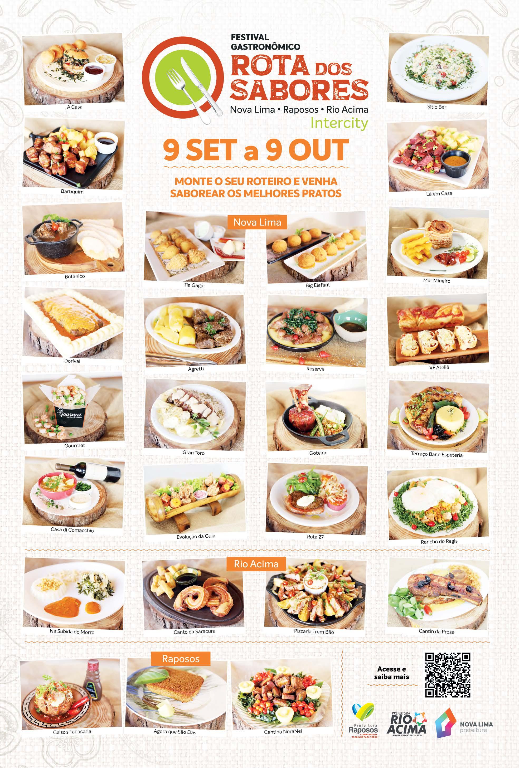 Os moradores de Nova Lima, Raposos e Rio Acima continuam saboreando o va riado cardápio do Festival Rota dos Sabores Intercity 2022. O evento promete agitar bares e restaurantes de Nova Lima, Raposos e Rio Acima, até o próximo dia 9 de outubro. Para essa edição, foi criado um roteiro integrado entre as cidades vizinhas, que possuem afinidades naturais, culturais, históricas e gastronômicas.