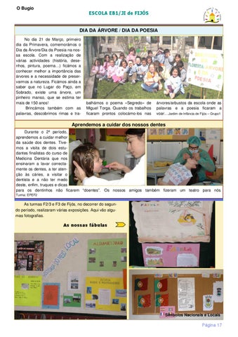 DIA DA ÁRVORE / DIA DA POESIA No dia 21 de Março, primeiro dia da Primavera, comemorámos o Dia da Árvore/Dia da Poesia na nossa escola. Com a realização de várias actividades (história, desenhos, pintura, poema…) ficámos a conhecer melhor a importância das árvores e a necessidade de preservarmos a natureza. Ficámos ainda a saber que no Lugar do Paço, em Sobrado, existe uma árvore, um pinheiro manso, que se estima ter mais de 150 anos! Brincámos também com as palavras, descobrimos rimas e tra-