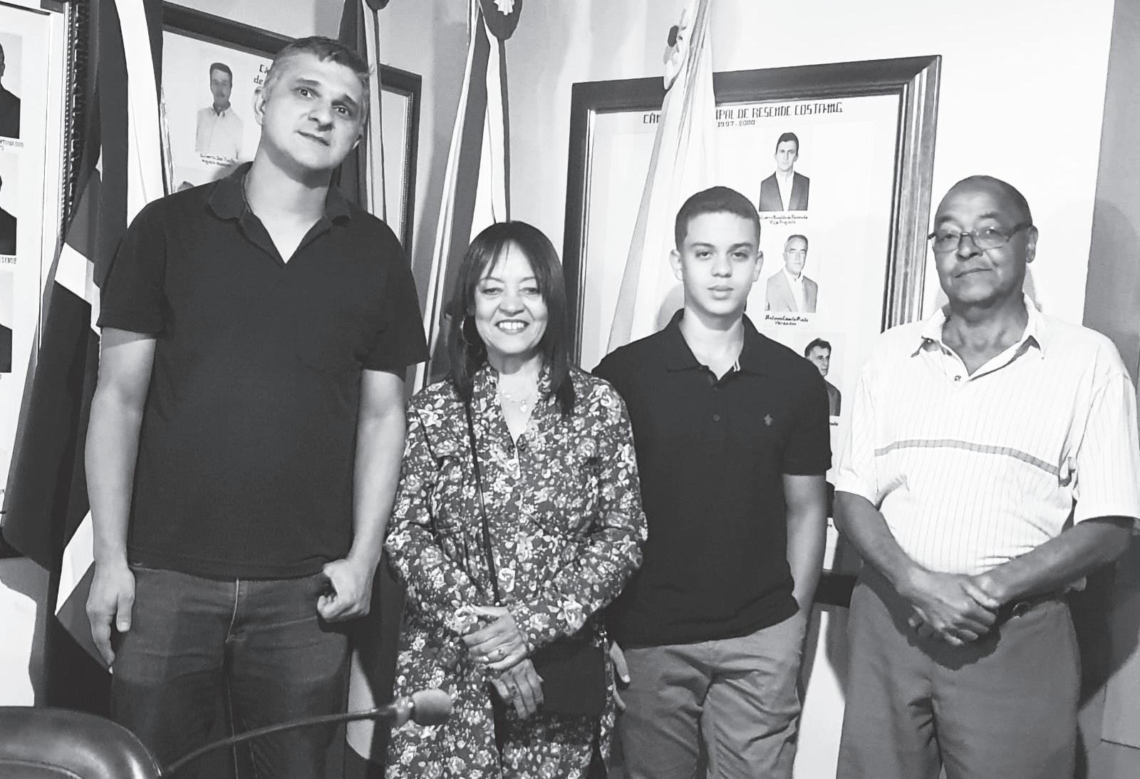 - Verificar a possibilida de de o Executivo Municipal instalar, na praça Cônego Car doso, em frente à igreja matriz de Nossa Senhora da Penha de França, estrutura ideal para proporcionar Wi-Fi público e gratuito para a população re sende-costense, democratizan do o acesso à informação, tanto para a faixa etária mais jovem, que tem celulares, mas não possui recursos para custear o serviço de internet e consultar diferentes fontes de estudo e in formação, quanto para as faixas de pessoas adultas, que cada vez mais utilizam esse recurso para se relacionarem com a família e com outros contatos relevantes. (vereador Lucas). - Verificar a possibilidade de ser realizada, por meio da Secretaria Municipal de Agro pecuária e Meio Ambiente, campanha de conscientização, utilizando o apoio dos Agentes Comunitários de Saúde, junto à população do Município de Resende Costa-MG, com o in tuito de promover panfletagem educativa orientando as pessoas a não jogarem lixo nas margens de estradas vicinais, bem como em barrancos, terrenos e dento dos limites da cidade. Com esta ação conscientizadora, colabo raremos para a preservaçãodo meio ambiente. Necessário se faz ainda promover atividades educativas visando à conscien tização dos cidadãos referente à coleta de lixo na área urbana. Para não haver acúmulo de sa colas de lixo nas proximidades das lixeiras, pede-se que se res peitem os horários de circula ção dos caminhões da limpeza urbana. (vereador Paulo Alti vo). A vida é feita de ciclos. É movimento. É começar e ter minar. No mês de julho, o meu ciclo como Assessora Jurídica da Câmara Municipal chegou ao fim. Foram quase 8 anos de aprendizado e enriqueci mento profissional. Conheci pessoas competentes, colegas de trabalho que sempre foram meus parceiros, vereadores que buscaram o melhor para o município. Grandes foram os desafios e maiores ainda as conquistas que obtive. Hoje, quero apenas agradecer por tudo o que vivi no Legislativo Municipal de Resende Costa. Despeço-me com alegria pelas amizades que fiz e pela opor tunidade que tive. Com certe za, nossa querida Câmara es tará bem atendida com o novo assessor, e vou em busca da nova etapa na minha carreira como advogada. É preciso co ragem para realizarmos mu danças, aprendermos novos caminhos e sermos gratos por tudo que passamos e que nos faz crescer. Obrigada a todos! Marina Vale Cláudio com os familiares de Ivan CâmaraBarbosaaprovou
