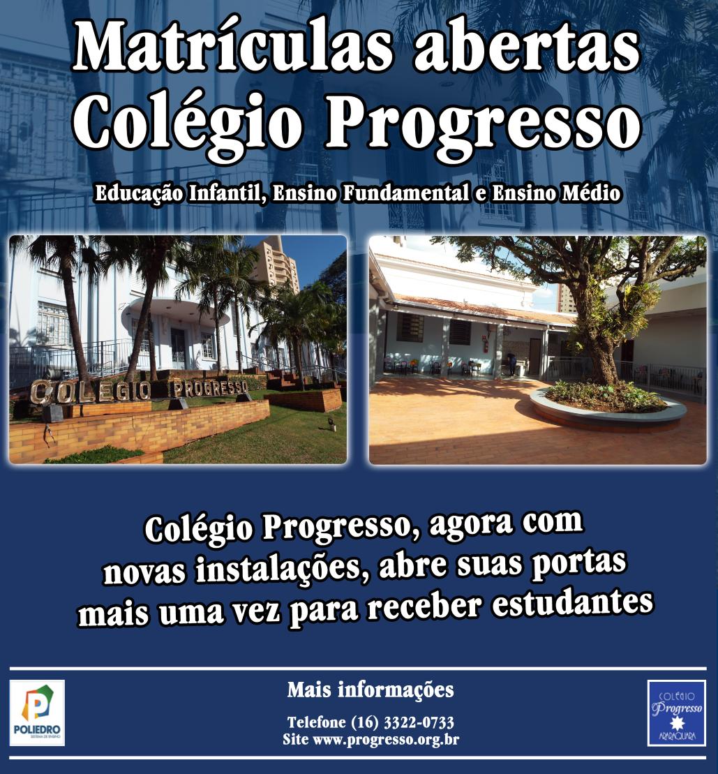 Colégio Progresso Educação Infantil, Ensino Fundamental e Ensino Médio Fone: (16) 3322-0733 - site: progresso.or g.br