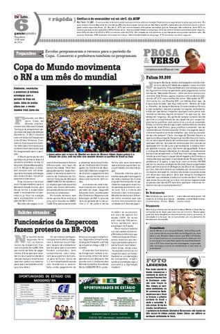 forma não será necessário que as escolas paralisem suas atividades nos dias de jogos. Eduardo informa que as escolas que aderiram à greve da rede estadual de ensino estarão funcionando no período da copa para repor aulas perdidas e o horário, nesse caso, fica a critério dos diretores das instituições. Mesmo nesses casos, Eduardo Colin acredita que não haverá funcionamento das unidades em dias de jogos. missões se acumulam em mais de quatro mil desde 2009. Só neste ano, mais de 500 petroleiros perderam seus empregos no Estado. Por e-mail enviado há um mês sobre o assunto, a Petrobras informou que “todos os repasses financeiros relativos aos serviços prestados pela empresa foram realizados”. Além disso, disse estar “buscando minimizar os impactos para os trabalhadores e as operações da companhia, respeitando as condições que o contrato e a legislação impõem”.