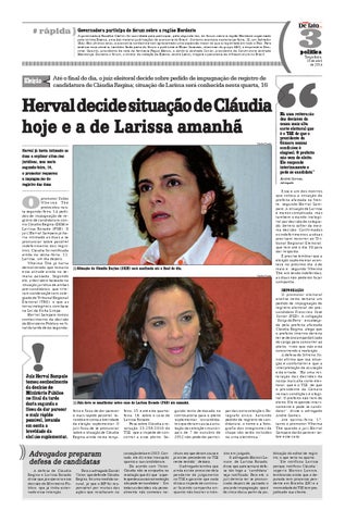 feira, 15, e até esta quartafeira, 16, sobre o caso de Larissa Rosado. Pesa sobre Cláudia a resolução 23.256/2010 do TSE, que a impede de concorrer a esse pleito. Se-
