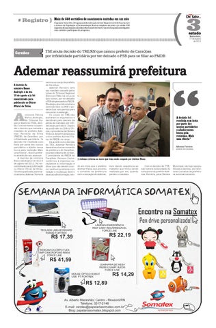 ministra Fátima Nancy Andrighi, do Tribunal Superior Eleitoral (TSE), decidiu liminarmente suspender o decreto que cassava o mandato do prefeito Ademar Fer reira da Silva (PMDB), de Caraúbas, por infidelidade partidária. “A decisão foi recebida com festa por parte dos nossos partidários e aliados nessa busca pela reeleição. Mais uma vitória”, disse o prefeito através de seu assessor. A decisão da ministra Nancy Andrighi é do dia 13 de agosto de 2013. Foi encaminhada para publicação no Diário Oficial da União. Uma vez publicada, automaticamente Ademar Ferreira