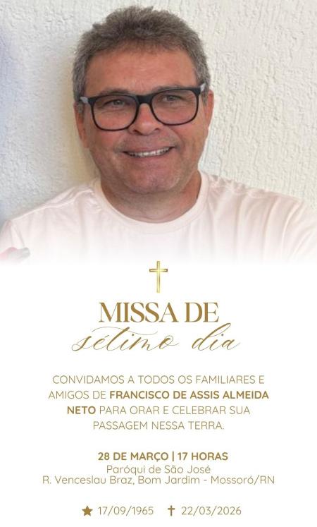 O sepultamento de Luiz Alves acontece nesta sextafeira, às 8h, no Cemitério São Sebastião, no Centro de Mossoró.
