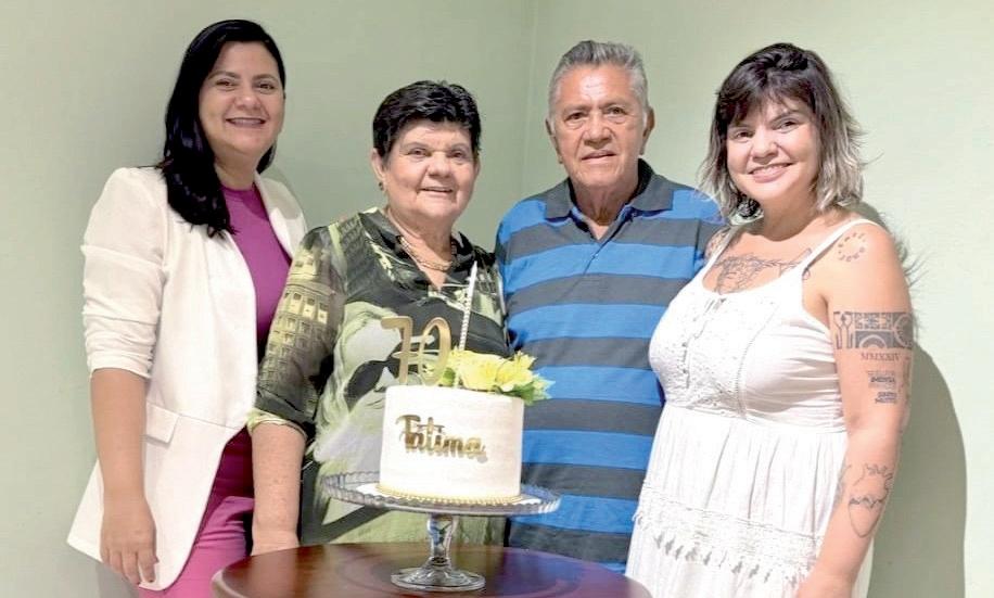 7.0 ao lado do maridão Gilson Barreto e das filhas Mirna e Mércia.