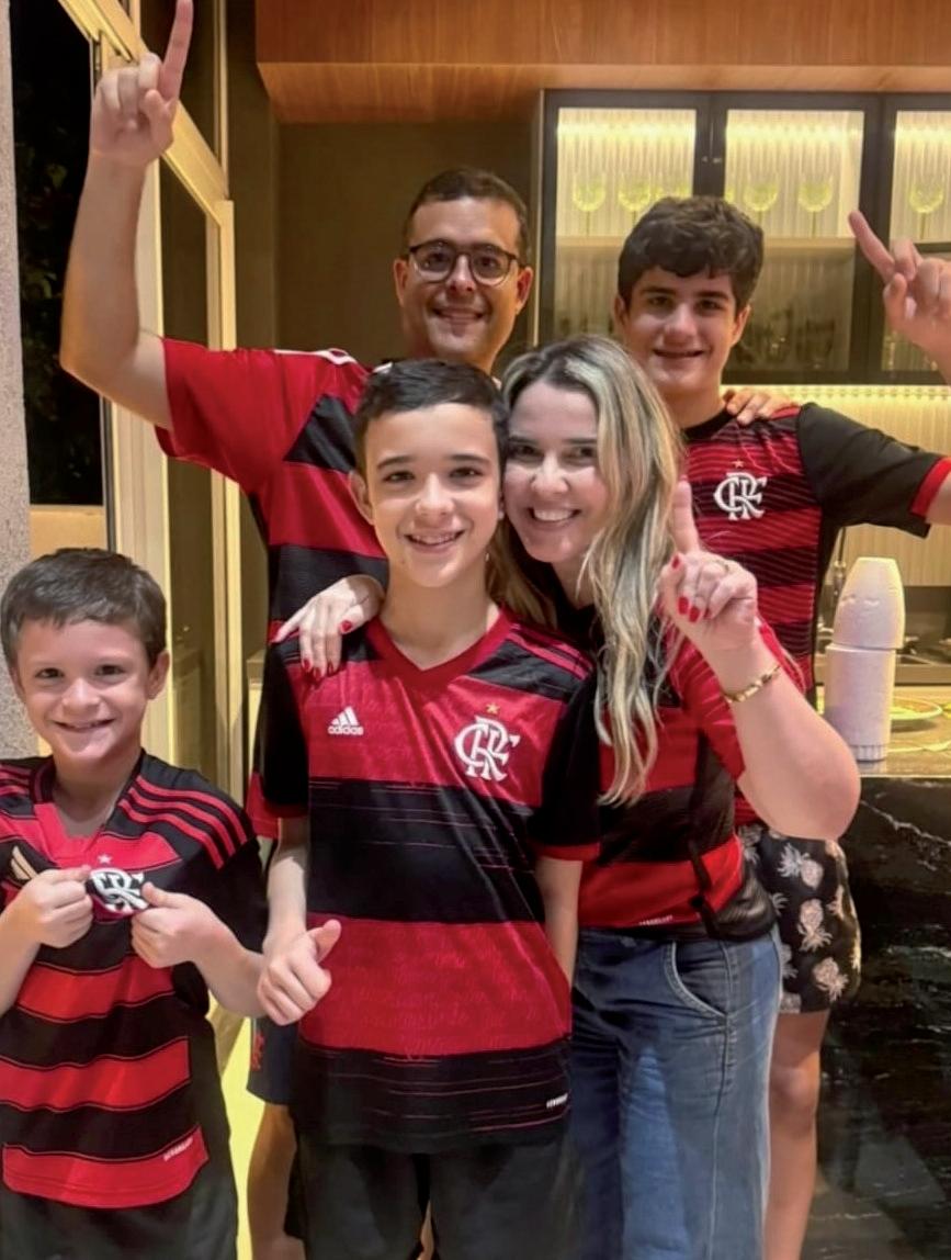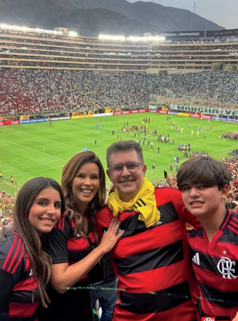 A família Jonas Filho e Roberta Rosado, com os filhos Giovana e Bernardo Neto, conferiu de perto a vitória do Flamengo na Libertadores, direto do Estádio Monumental, em Lima, no Peru.