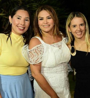 A aniversariante Návila Vasconcelos recebendo Aline Medeiros e Cinthia Pinheiro.