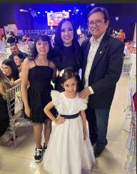 Momento celebração de 30 anos da Ótica A Graciosa, Leila Fernandes com os filhos Dr. Rudá, Sandi e Nikolas Jr. Renovo o abraço.