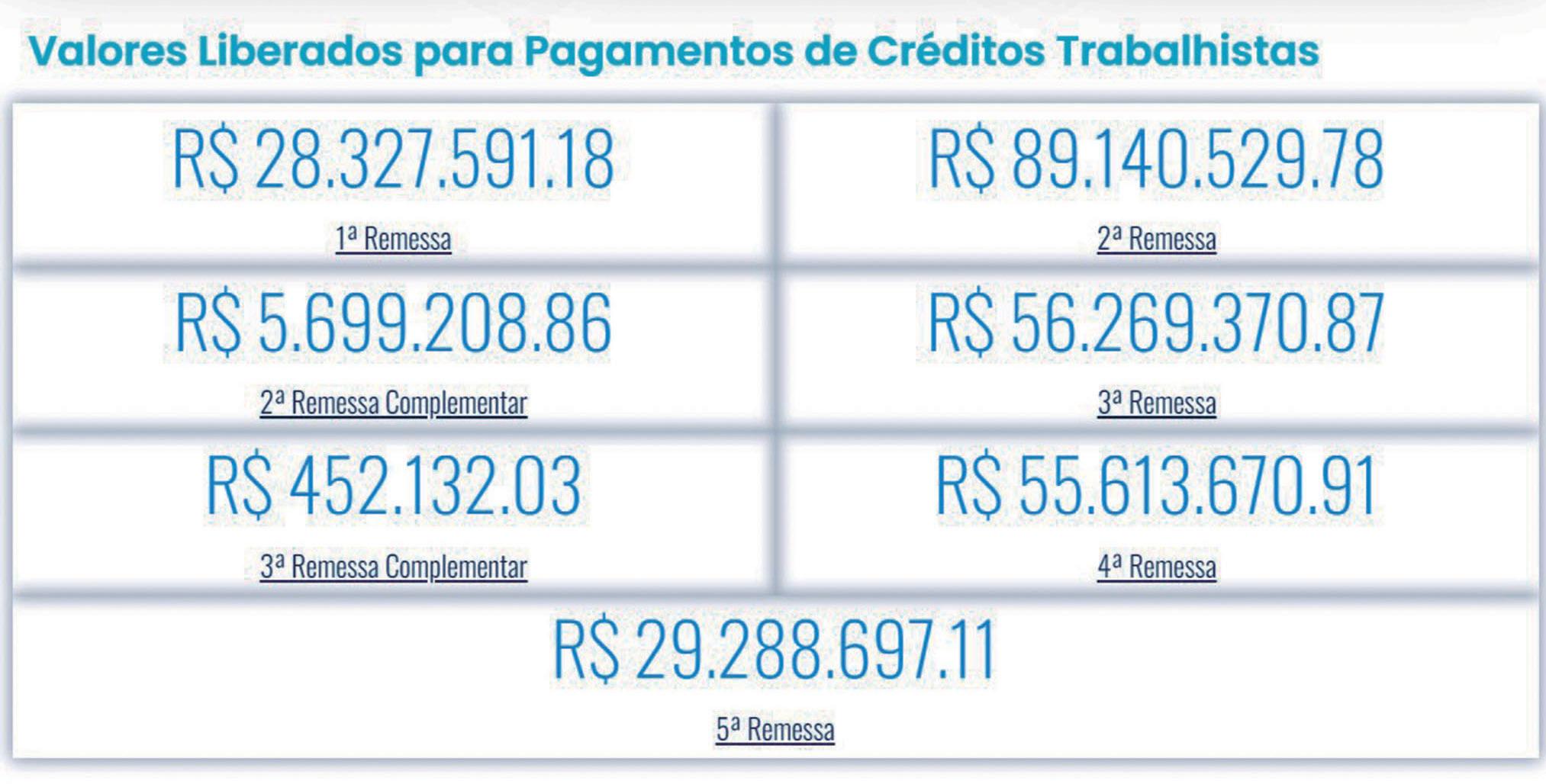 lho Advocacia, R$ 1,4 milhão a menos do que o escritório de advogados hoje exige. Após análise do caso, os magistrados Emanuela Bianca de Oliveira Porangaba e Luciano Andrade De Souza decidiram que a quantia justa dos honorários a ser paga é de R$ 25,2 milhões (cerca de R$ 500 mil a menos do que foi reservado pela administração judicial), referente aos 3,5% do valor dos precatórios.
